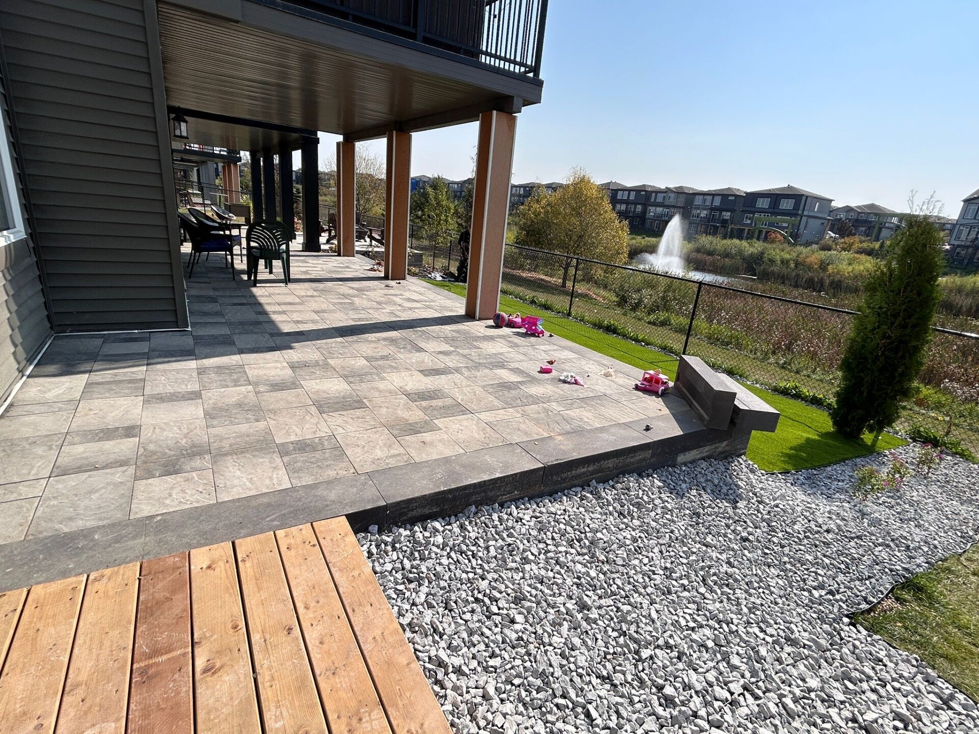 At Aster Landscaping & Construction Ltd in Edmonton, Alberta, we pride ourselves on transforming outdoor spaces. Our gallery showcases our amazing work, including expert grading, lush natural lawns, modern artificial turf installations, durable pavers, custom fencing, elegant decking, and vibrant planting designs. Explore our commitment to quality and discover how we can create the perfect outdoor oasis for you.
